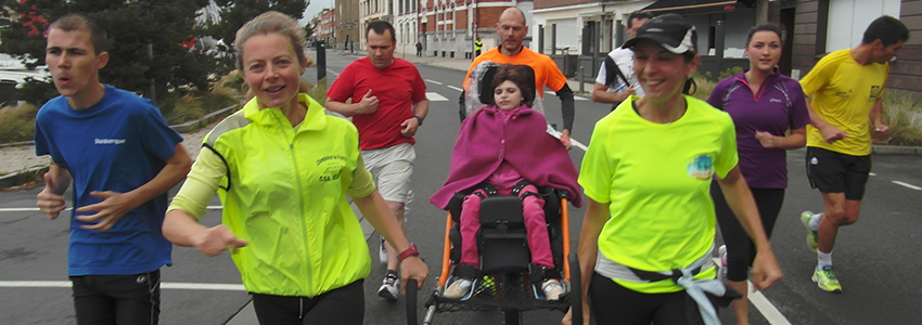 Nous avons en effet couru aujourd'hui pour la première fois les 10km de Marchiennes et ce fut aussi pour Eve son baptême de la joelette.