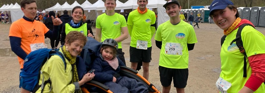 Et que dire de la super pilote ! Elle était énergique du début à la fin. Avant même le départ, son enthousiasme était touchant. Pendant toute la course, les autres coureurs et supporters criaient son nom à notre passage. Sa bonne humeur et son sourire, accompagné de celui de sa maman, sont des souvenirs qui resteront gravés dans ma mémoire. |