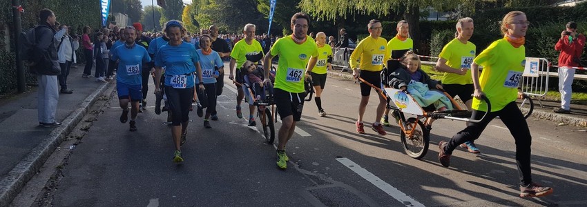 Saveurs particulières pour cette course cette année : en effet nous accueillons Cloé pour sa première expérience de pilote de joëlette, et Amir pour sa première course en qualité de coureur.